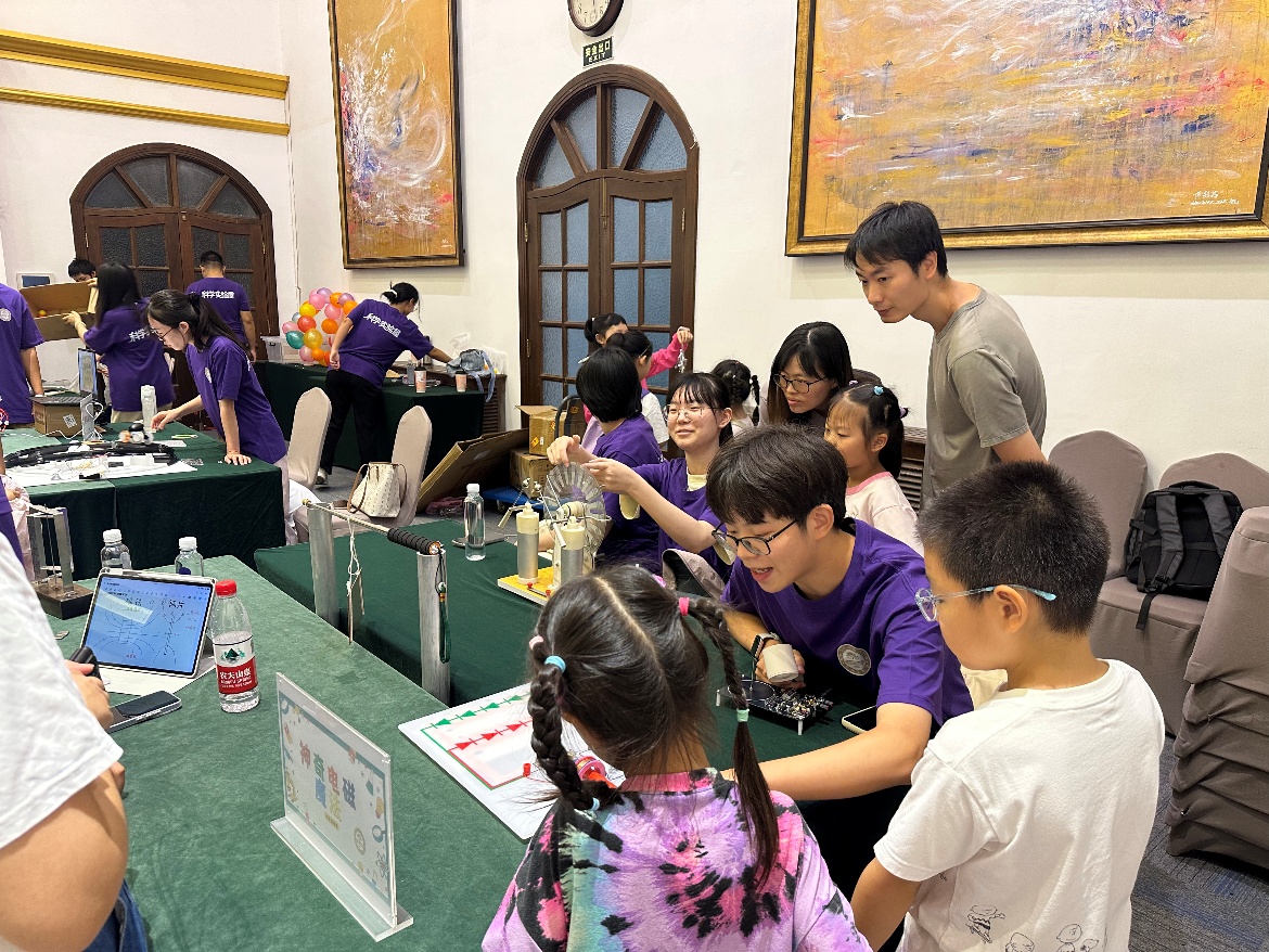 在本次活动中,16名本研学生作为志愿者在石卉副教授等教师的精心组织下,准备了趣味纸电路、神奇电磁魔法、“反重力”悬浮、伯努利马戏团等四个主题专区的共计15个科学体验项目。