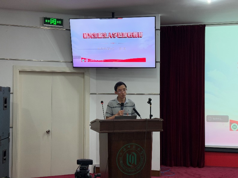 学院副院长郭谦强调了校训的重要性,并提出了“厚德三则”:与导师勤汇报、懂感恩;与同学多沟通、多理解;与他人讲规则、知边界。他建议研究生做好学业和职业规划,仔细研读研究生手册,积极参加学术竞赛以提高学术研究能力。郭谦教授还强调了时间积累的重要性,鼓励同学们将认知转化为成果,并分享了常用的学术信息来源。此外,他还介绍了学校为研究生提供的保障与支持措施,以助力同学们的学术成长。